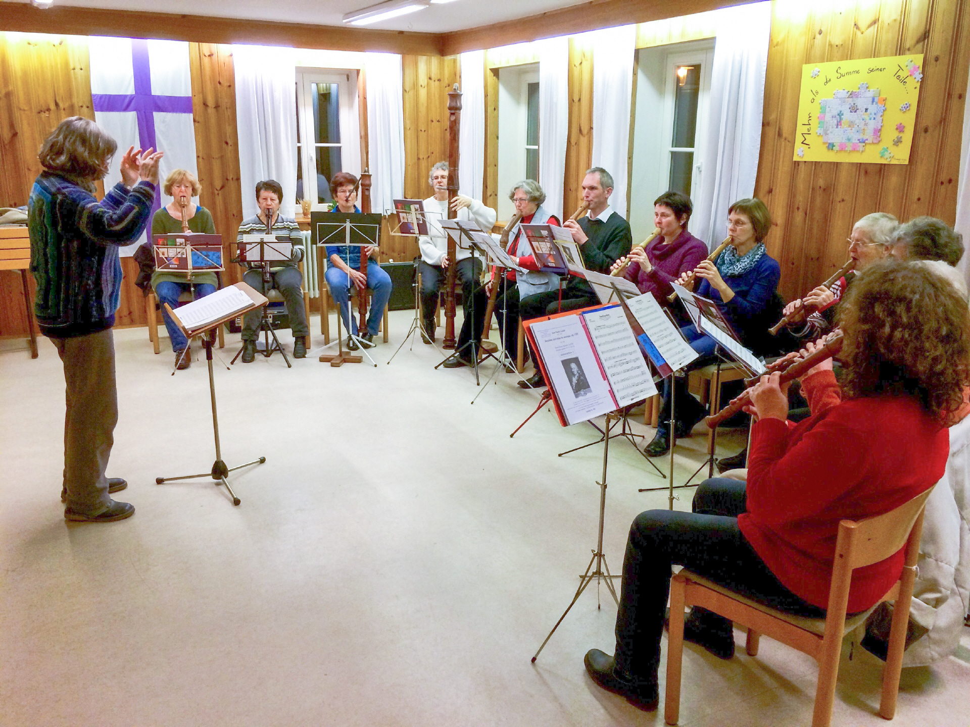 Unser Musizierkreis setzt sich aus 20 Mitspielerinnen und Mitspielern zusammen und wurde bereits 1990 gegründet. Inzwischen spielen wir 4-6stimmige Stücke in der allgemein bekannten Besetzung (4' Register). Zu unserem Kreis zählen Sopran-, Alt-, Tenor-, Bass-, Großbass- und 1 Subbassblockflötenspieler/-innen.