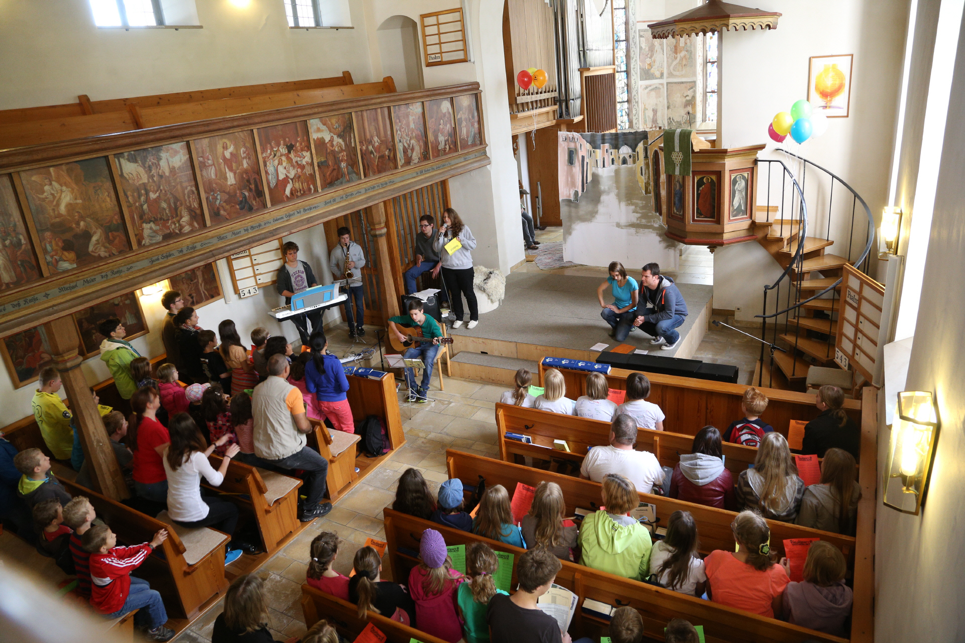 Wir laden große und kleine Leute ein, im Chorraum Gottesdienst zu feiern! Die Mitmachkirche findet etwa einmal im Quartal mittwochs um 11 Uhr statt. Gemeinsam wollen wir Lieder singen, eine Geschichte miterleben und mit unserer Fröhlichkeit Gott loben!