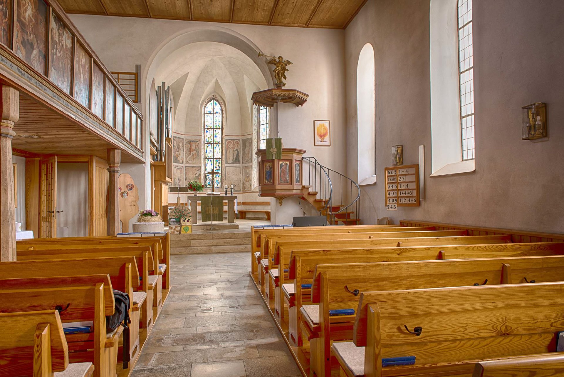 Im Jahr 1717 wurde die erste Orgel eingebaut: Das Instrument tat fast 200 Jahre lang seinen Dienst. Aus derselben Zeit (1720) stammt die Bemalung der Emporenbrüstung mit biblischen Motiven durch den Schelklinger Maler Johann Georg Wolcker, den Älteren. Der Künstler war in vielen Kirchen in der näheren Umgebung tätig, so auch in Berghülen, Ulm und Schelklingen.