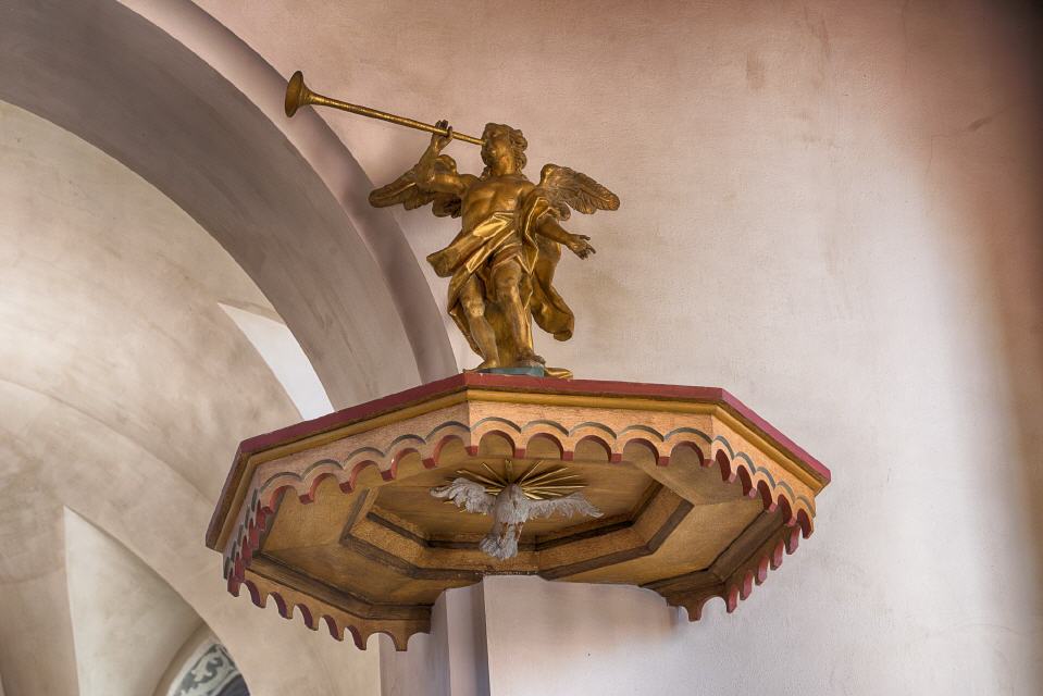 1848 wurde die Kanzel neugestaltet: Sie wurde mit Darstellungen der vier Evangelisten versehen. Auf dem Schalldeckel wurde der goldene „Posaunenengel“ installiert – für viele Seißener eine der liebsten Figuren in ihrer Kirche.